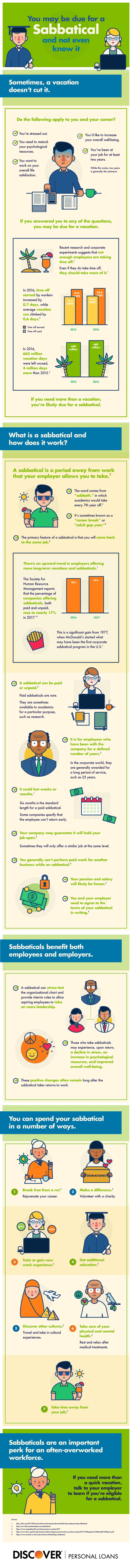 Many people are familiar with a sabbatical in the academic world; it’s a chance for academics to pursue a rigorous research idea and do so without having to teach class. But the same notion can be used in the workplace, even if it’s just for a few weeks or months. Here’s what to know about it – https://www.discover.com/personal-loans/resources/major-expenses/sabbatical/