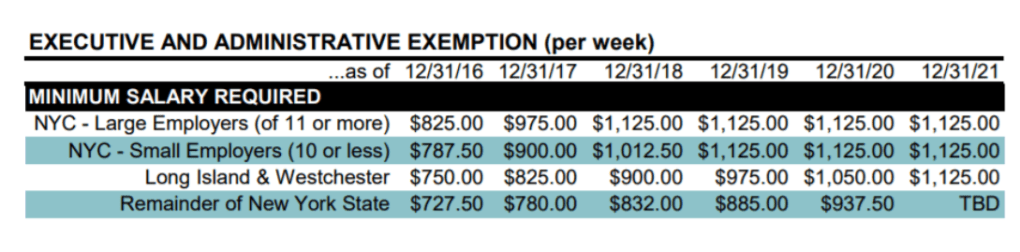 Exempt Administrative and Executive Minimum Salaries The minimum salary for exempt executive and administrative employees in New York will increase as follows: